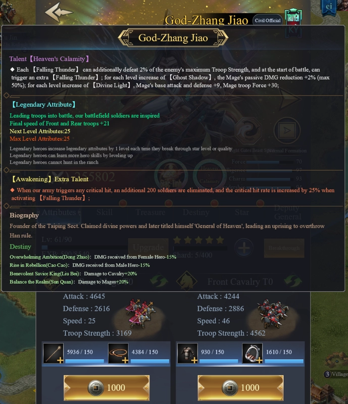 Legendary Zhang Jiao: available from the Altar (30 shards/day). Can be upgraded to “God Zhang Jiao” in Merge 2.