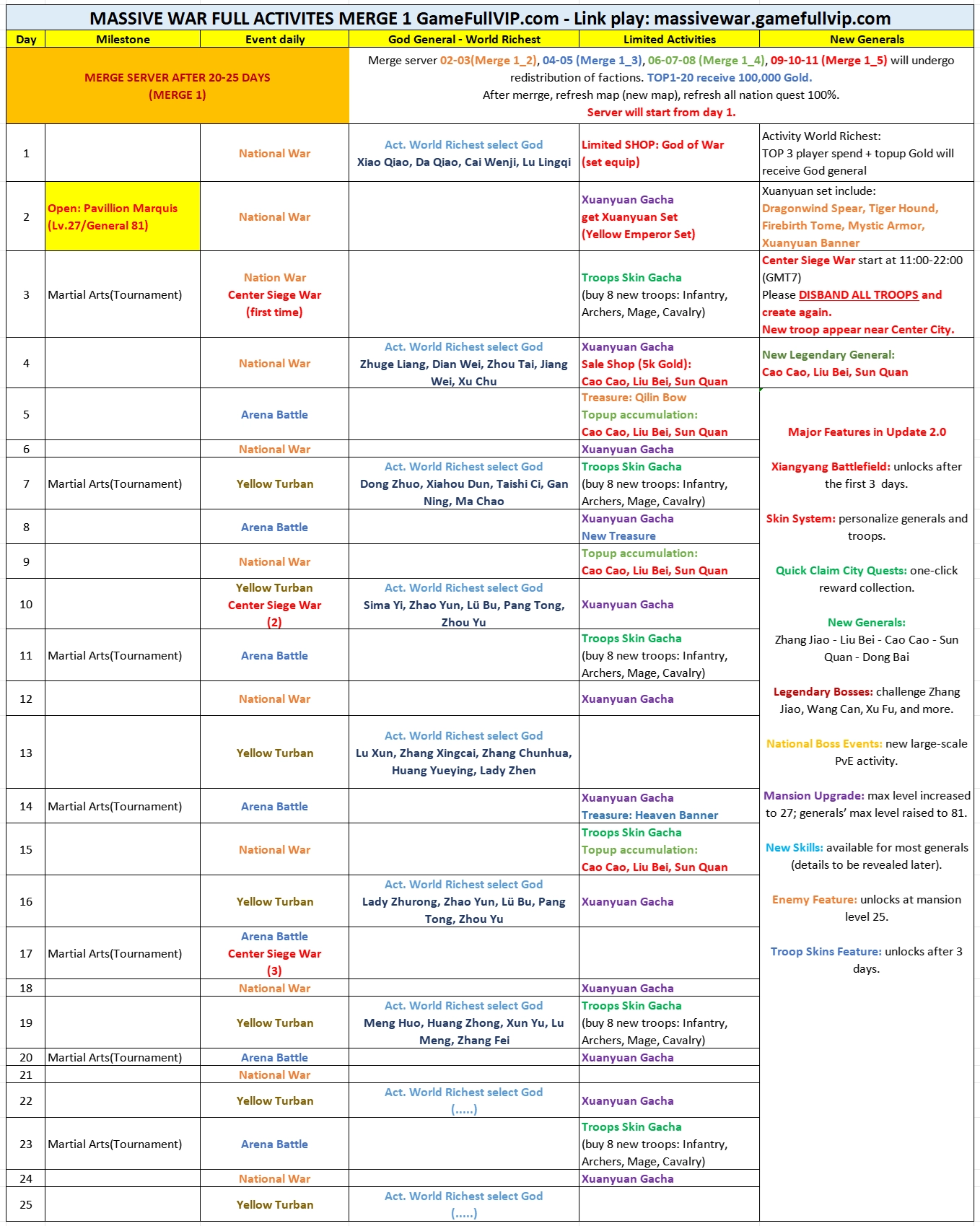 Massive War Mobile – Big Update 2.0 & Server Merge (Merge 1) Full Guide