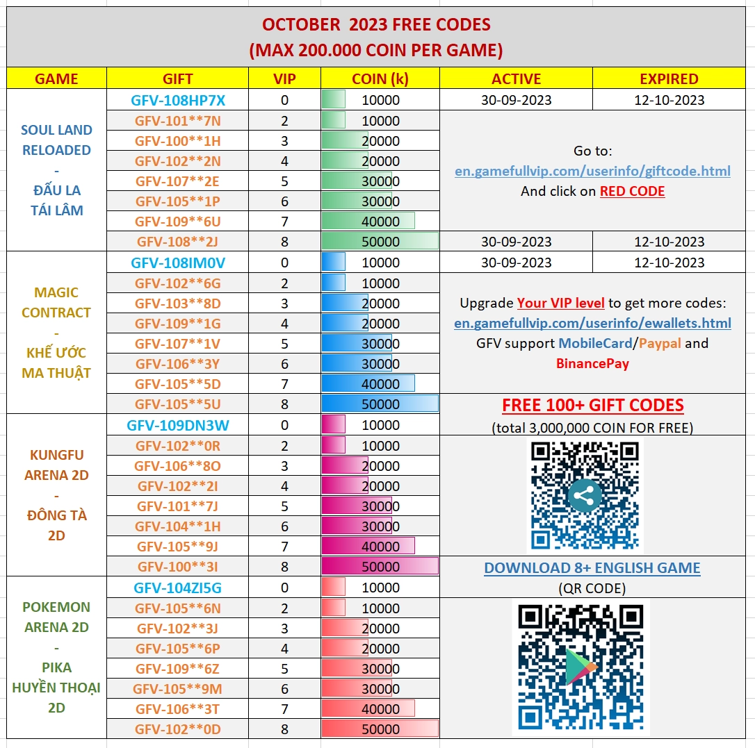 Starting SEPTEMBER 2023, we will send you lots of free codes and bonuses for FREE PLAYER (VIP0)! You will receive more if you top up and increase your VIP level on the website.