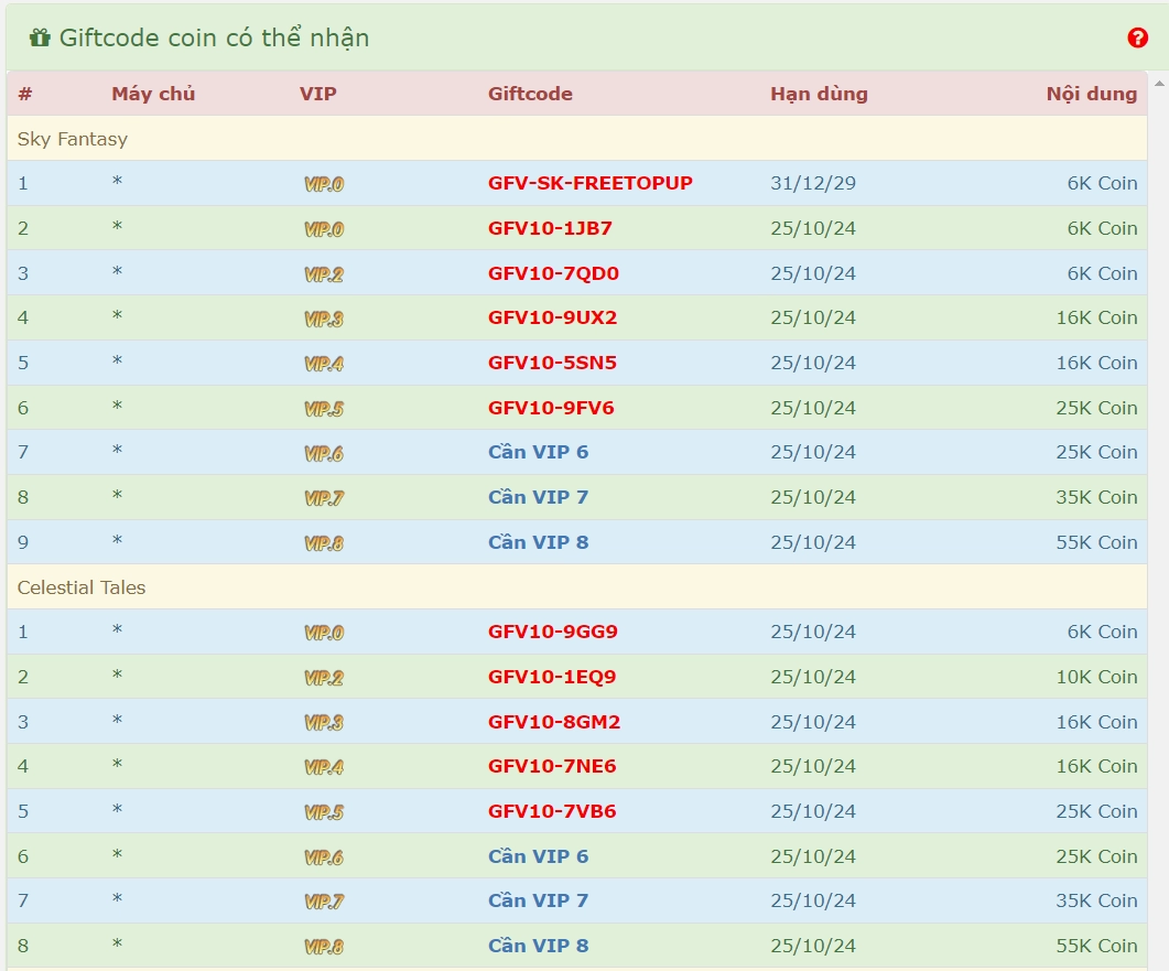 Từ tháng 10.2024 GameFullVIP đã tích hợp hệ thống giftcode vào phần nạp ingame. Ví dụ: