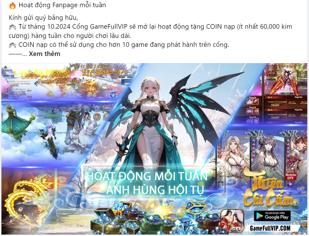 GameFullVIP có tổ chức các hoạt động trên fanpage vào thứ 7 mỗi tuần.