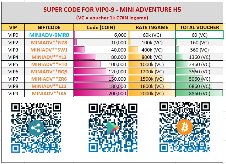 - VIP8 – Receive a total of 6,860,000 COIN (6,860 vouchers).